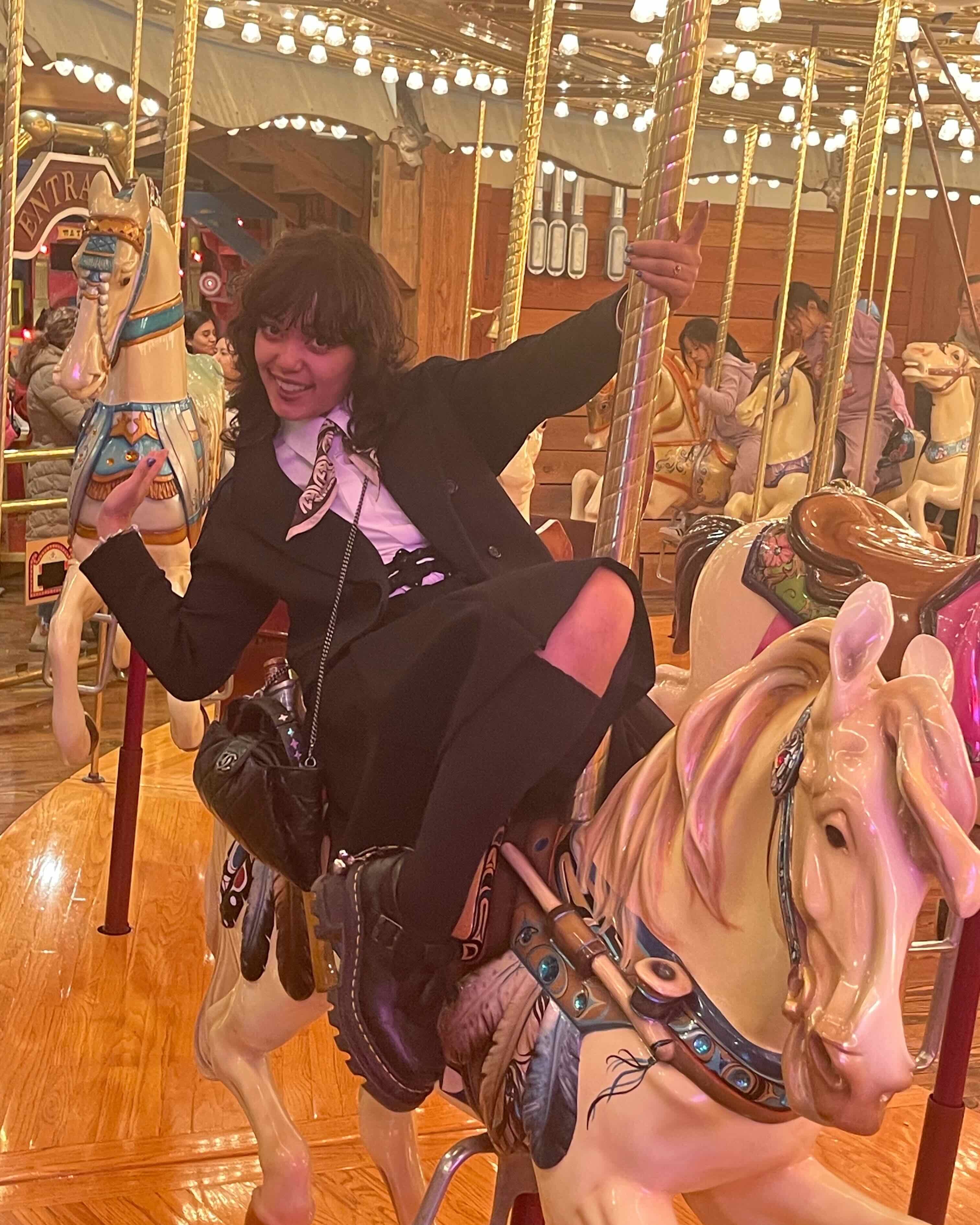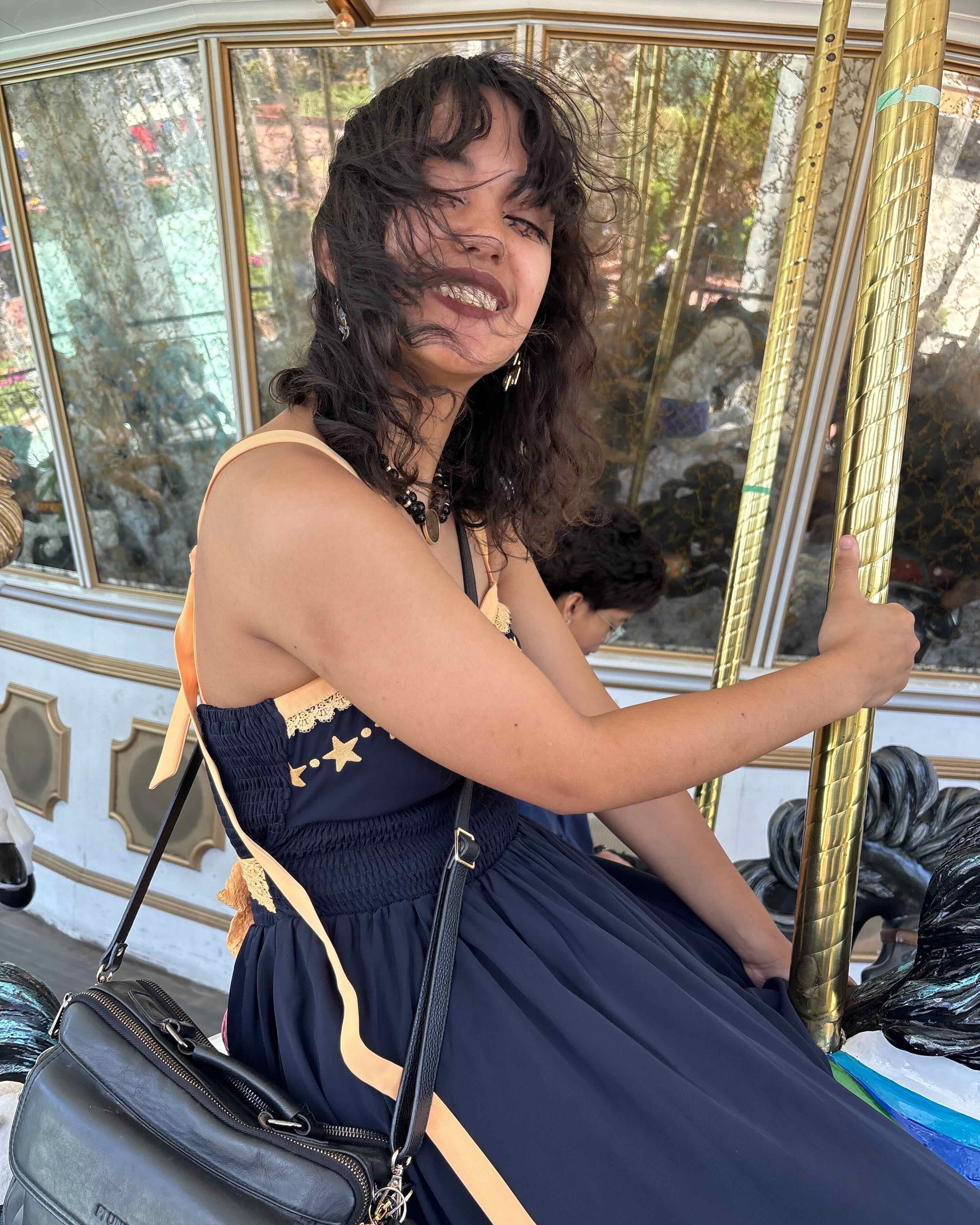 A self-described “thoroughbred mutt”, she traces the themes in her artwork to her mixed Filipino-Colombian ancestry, cultures in which celestial motifs and vivid colours abound. She has been creating artwork for as long as her artist father has allowed her access to his tools, beginning in fibre arts before expanding into drawing and painting, taking many detours before delving most recently into digital art and ceramics.